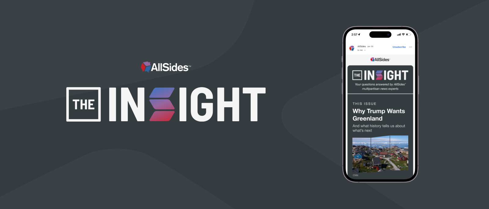 The Insight is a newsletter sub-brand and content product published weekly by AllSides. It features distinct editorial-style branding, structured content design, custom-built Mailchimp templates, custom graphics for headers and inline iconography, and a question-based format which creates interaction between AllSides editors and their readers.